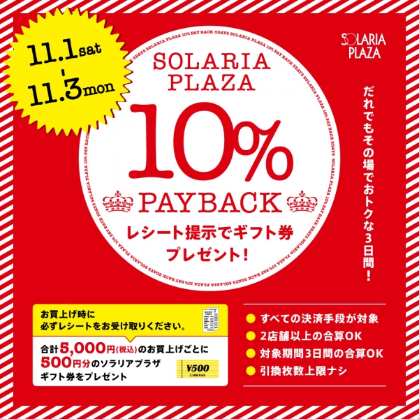11月1日(土)~3日(月・祝)の3日間、10%ペイバックを開催します!